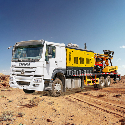CSD400A 6 x 4 Sinotruk Howo Truck Mounted Well Well Drilling แท่นขุดเจาะมีความยืดหยุ่นมากในถนนที่ยากลำบากและสามารถใช้กันอย่างแพร่หลายในหลาย ๆ ด้านเช่นการสำรวจทรัพยากรของหลุมอุทกวิทยามีเธนถ่านหินชั้นตื้น ๆ